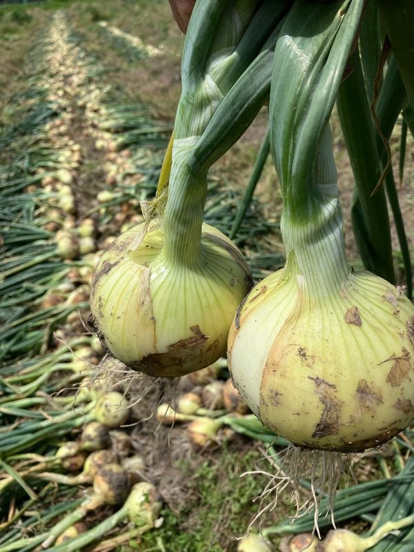 2025年6月10日 カールさんの雑記 初夏の安曇野、玉ねぎ収穫 安曇野も爽やかな初夏の6月を迎えました。恒例の信州安曇野ハーフマラソン。今年は市制20周年と重なり、記念の大会となりました。先日、30数年ぶりに再会を果たした高校時代の友人がランナーとして参加していて、人混みの中で何と再会!私にとっても記念の大会となりました。農作業は、玉ねぎ収穫の時期となり、今年も玉ねぎまつりへの参加などでの販売に取組んでいます。今年は雪もしっかりあったので、大きな玉になっています。