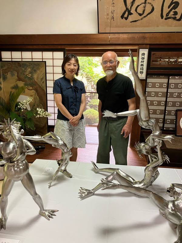 ステンレス彫刻家の中嶋大道さんの作品展が安曇野市内のお寺にて開催されてます。