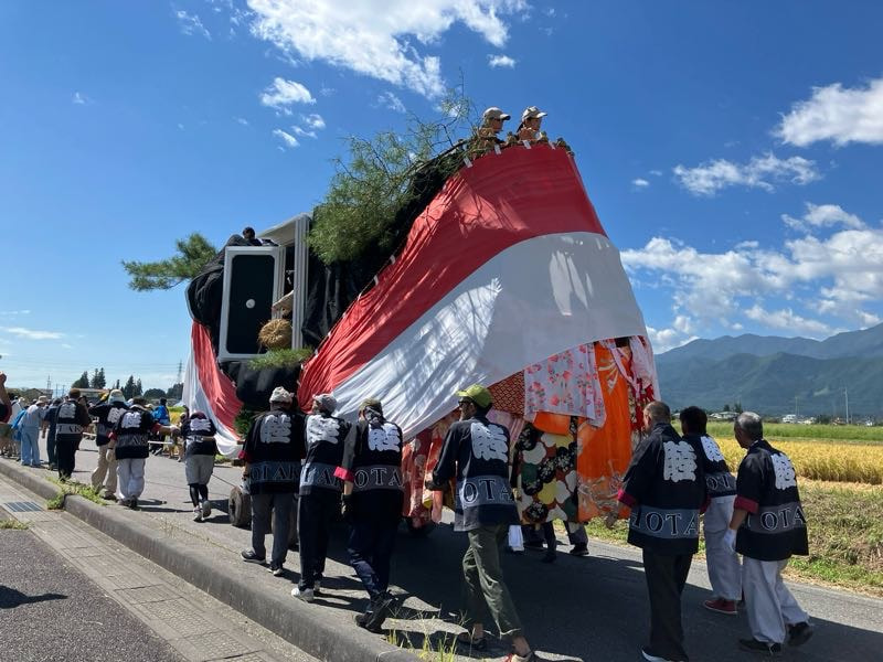 穂高区の地元氏神様である厄神様を祀る厄神祭は、通称、子どもまつりとも称され、子ども船(穂高神社例大祭時に奉納される大人船より小ぶりながら、全長約8m、高さ約4mほど)の地区内曳行を行い、五穀豊穣や家内安全、無病息災を祈ります。